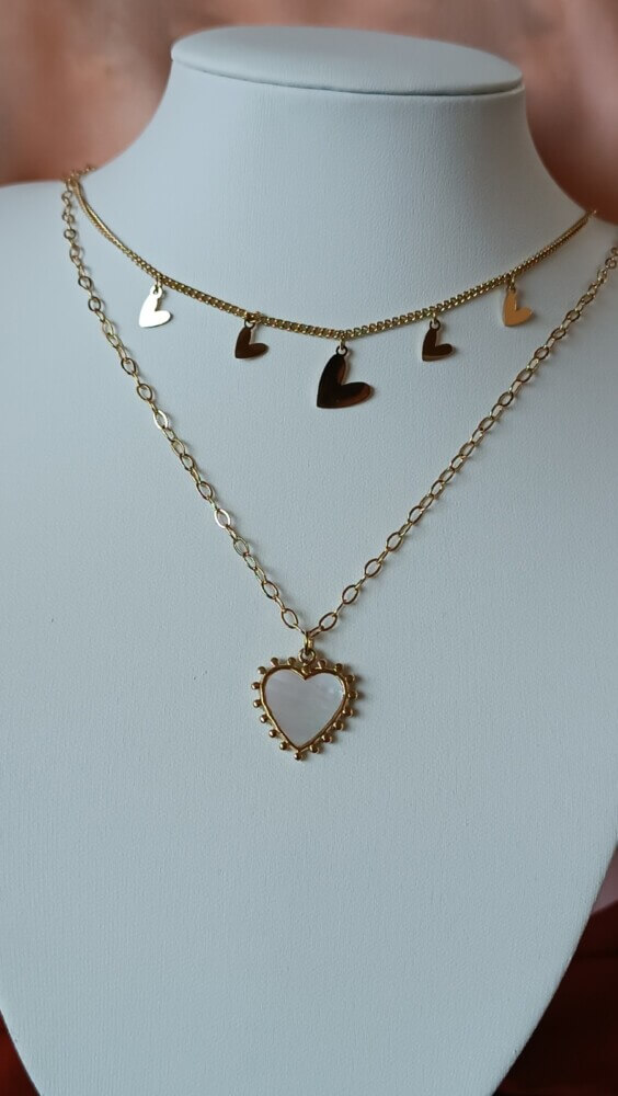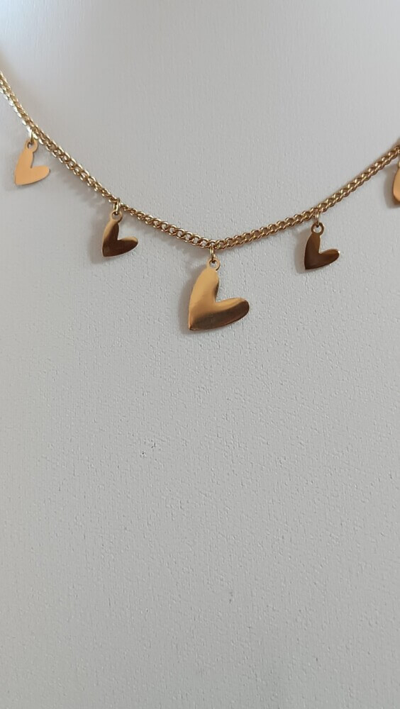 Ατσάλινο κολιέ σε χρυσή απόχρωση  με 5 μικρές καρδιές!